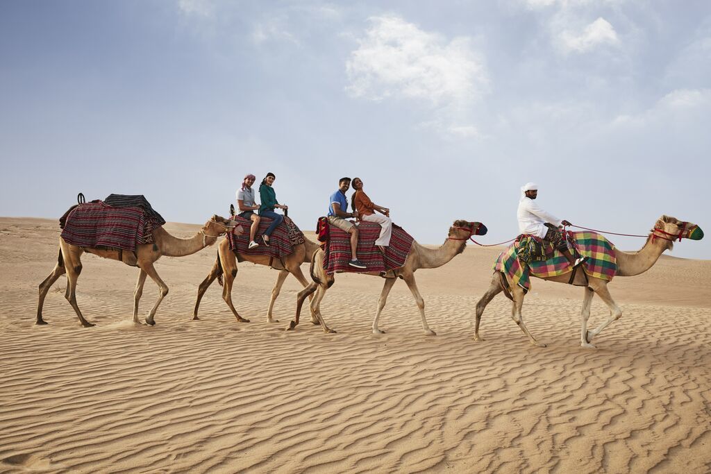 Eddig könnyed volt a program, vásárlás után viszont nincs mellébeszélés, a sofőr keresztben átvág a kétsávos autóúton, és irány a homokdűnék közé. A motor felhördül, beindul a driftelés, dűnére fel, dűnéről le, dűnére ferdén fel, dűnéről ferdén le, épeszű emberként azt mormolod magadban, hogy „a francnak ültem ide be”, meg hogy „úristen, mindjárt borulunk”, de közben bömböl valami zene, a sofőr pedig egy ujjal, iszonyat lezseren tekergeti a kormányt, mintha csak egy üres aszfaltúton haladna 50 km/órával. Az első hányinger 8-10 perc után biztosan megérkezik az átlag utazónak, de akkor stop, és mintha bioritmusra számolnák a megállást, meg is áll az autó: lehet fotózkodni. Egyre több autó áll meg egymás mellett, hamar kiderül, hogy nemhogy nem egyedül, hanem több százan vagyunk drifttúrán a sivatagban. 15 perc szünet után a „hullámvasút” pörög tovább, aztán újabb megálló következik, megint fotó, megint drift, a naplemente mögöttünk jár, majd egyszer csak megállunk benne. Négy teve áll előttünk, ki lehet próbálni a tevegelést.