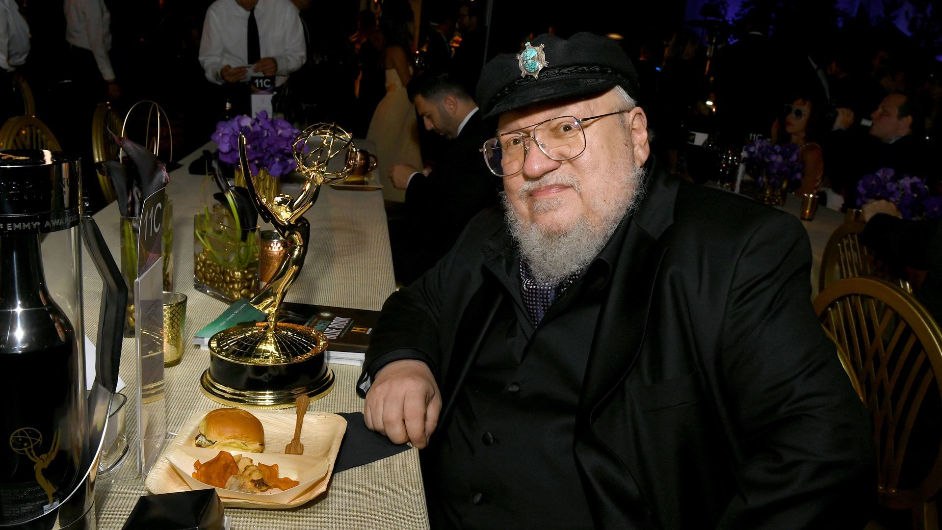 George R. R. Martin a Trónok harca megannyi Emmy-díja közül az egyik szobrocskával (Fotó: Getty Images)