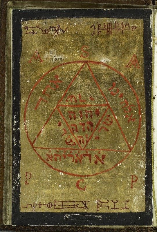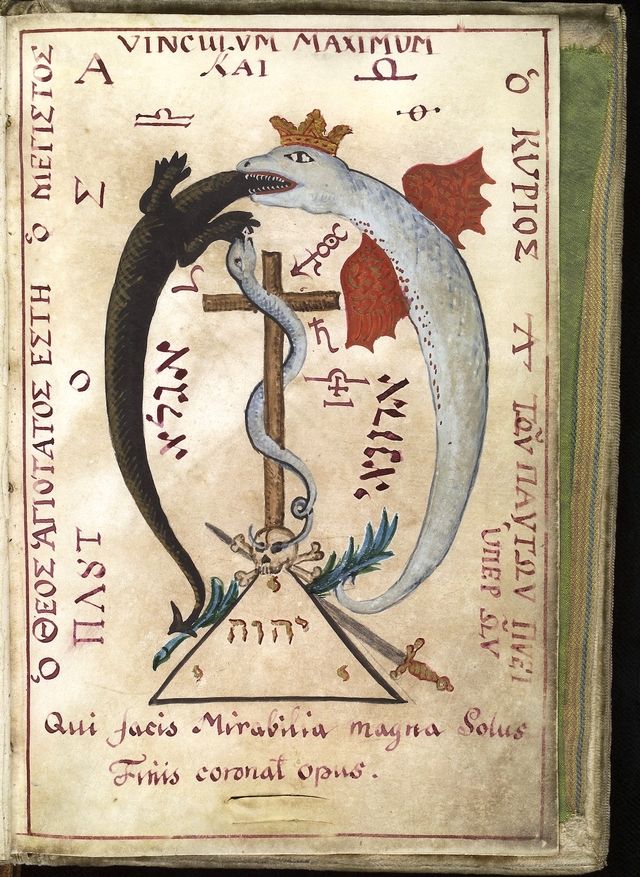 A Pokol Kulcsa részben titkosírással és valamiféle furcsa latin-héber keveréknyelven íródott varázsigéket tartalmaz, amelyeket naiv modorban készült fantasztikus illusztrációk kísérnek.