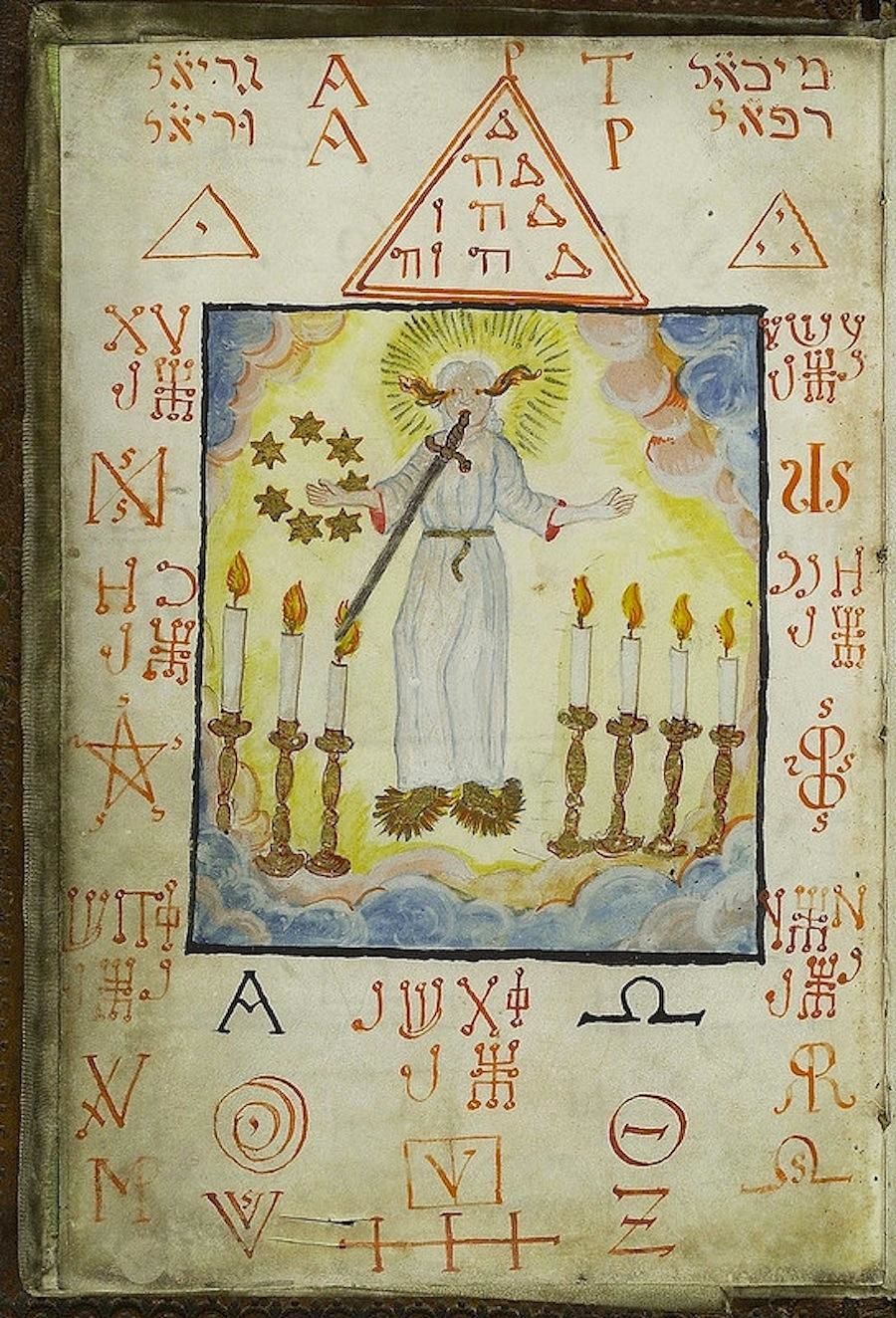 A Pokol Kulcsa részben titkosírással és valamiféle furcsa latin-héber keveréknyelven íródott varázsigéket tartalmaz, amelyeket naiv modorban készült fantasztikus illusztrációk kísérnek.