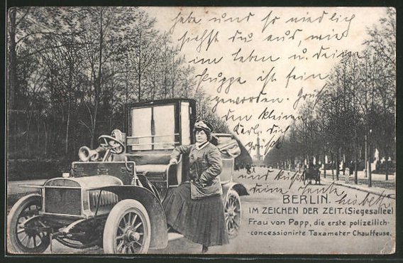 Amit akkor még nyilván nem taxisofőrnek hívtak, hanem magyarul többnyire bérkocsisnak vagy automobil-bérkocsivezetőnek (sőt: géperejű bérkocsivezetőnek!), de ez a lényegen nem sokat változtat: az egy csapásra híressé vált chauffeuse ugyanis egy áramvonalas automobilt vezetett, amelyen pénzért embereket szállított, szóval egész nyugodtan nevezhetjük taxisofőrnek. Ráadásul – és ezt a kijelentést különösebb utánajárás nélkül is meg merjük kockáztatni – az, hogy ő volt az első női taxisofőr Berlinben, valószínűleg egyúttal azt is jelenti, hogy ő volt az első (vagy egyik első) női taxisofőr az egész világon. Elvégre a német főváros már akkoriban is élen járt a trenddiktálásban.