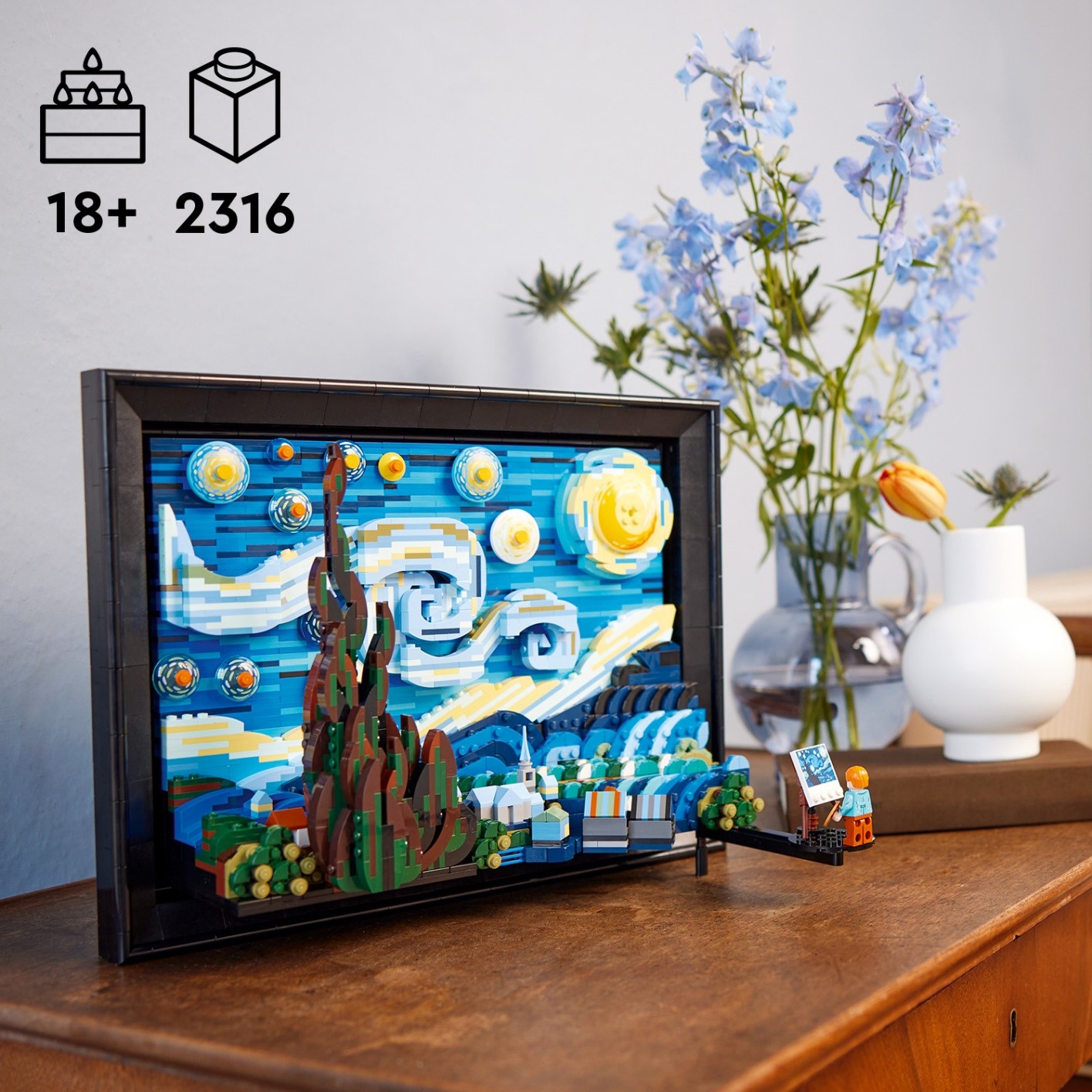 Elsőként jöjjön a LEGO Ideas Vincent Van Gogh – Csillagos Éj szettje, ami egy igazi műalkotás, ezért nincs is vele nehéz dolgunk lakberendezés szempontjából. Tehetjük falra, de nagyon jól tud mutatni egy komódon, ahol még egy váza és néhány könyv is helyet kaphat. Biztos vagyok benne, hogy minden művészetkedvelő elfogadná ezt a kiegészítőt.