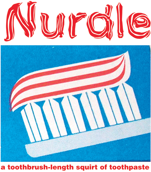 A nurdle rejtélyes jelenség: a szó eredete a homályba vész, és azt sem tudjuk, hogy melyik dobozon és mikor bukkant fel először a stilizált fogkrémsziluett. Magát a kifejezést – akkoriban még nerdle-nek írva – először az Amerikai Fogorvosok Egyesülete dobta be a köztudatba egy fogápolást népszerűsítő kampány során a kilencvenes években, dizájnelemként, illetve marketingcélokra viszont már sokkal korábban elkezdték használni: nagyjából a hetvenes évektől, amikor a tengerentúlon, illetve Európa szerencsésebbik felén megjelentek a színes fogkrémek. Ahogy a beachpackagingdesign blog írja: a csomagoláson szereplő nurdle a termék egyediségét, különlegességét volt hivatott hangsúlyozni.