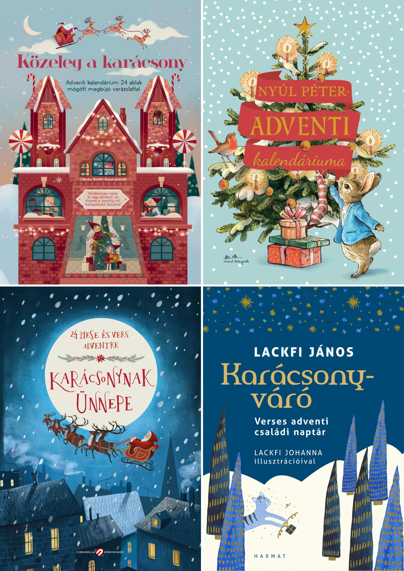 Adventi naptárak tele mesékkel (Képek: Móra Könyvkiadó; Manó Könyvek; Cerkabella Könyvkiadó; Hamrat Kiadó)