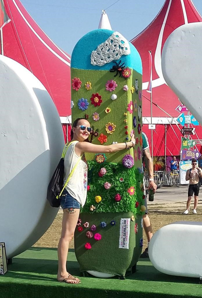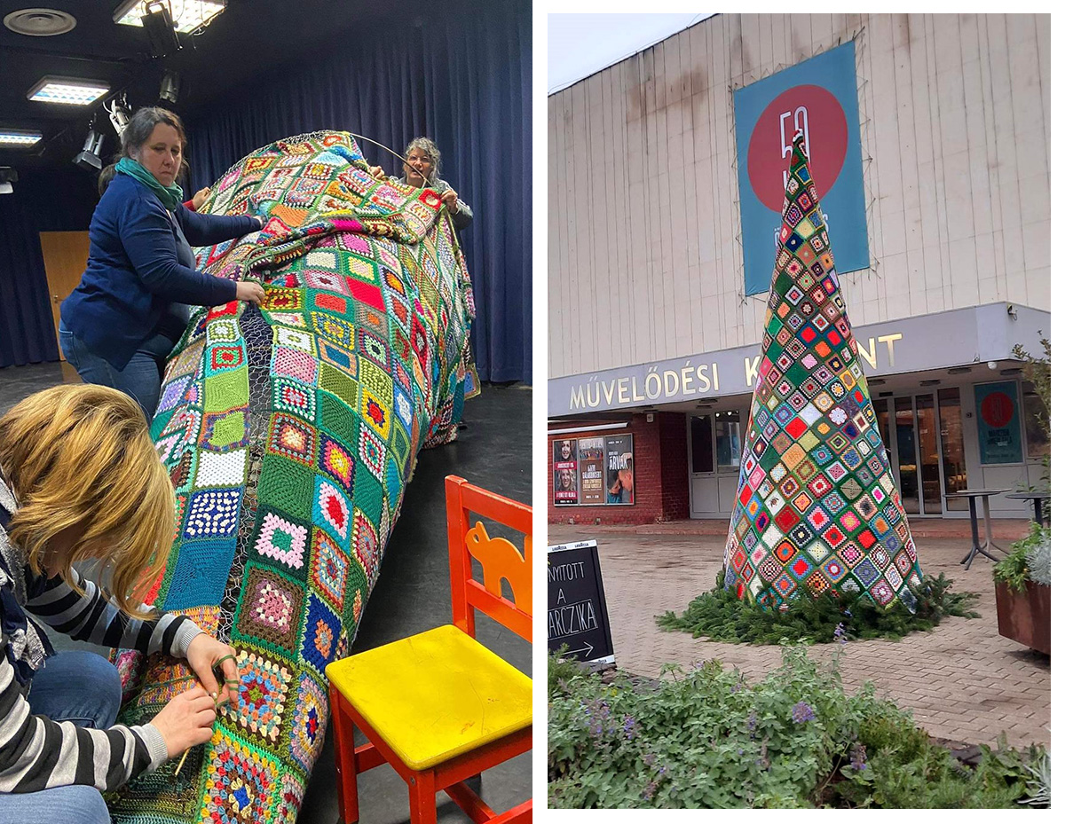 -Rengeteg pozitív visszajelzést kapunk – mondja Csomós Rita, az egyik aktivista. – Az olyan felületek, amelyek egyébként szürkék vagy uncsik, színesek lesznek. Mennek az emberek egy szürke reggelen a Móricz Zsigmond téren, és hopp, mit látnak, be van öltöztetve egy gomba. Ha valami kézzel készült, annak van egy más minősége is, hiszen ott van benne az energia, a ráfordított idő. Nem vagyok spirituális, de tényleg van egy pozitív energiájuk, ami átsugárzik. Megállnak az emberek, elgondolkodnak a képeken, kicsit kizökkennek abból, amiben épp vannak. Nekünk pedig ez egy nagyon kellemes időtöltés, közösségi tevékenység, lehetőséget ad a kreativitásunk kiélésére.