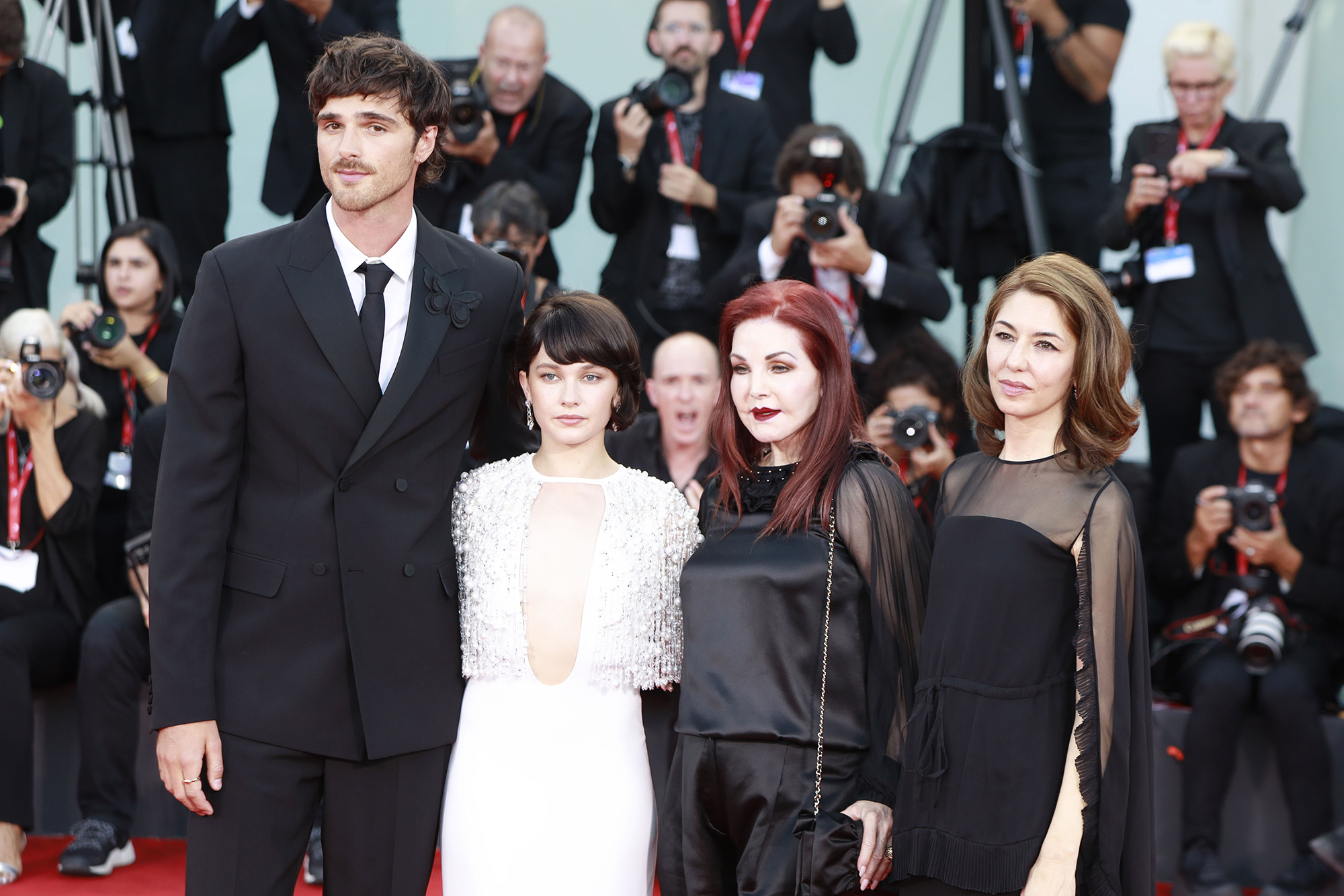 Sofia Coppola, Priscilla Presley, Cailee Spaeny és Jacob Elordi (Fotó: Laurent Koffel/Gamma-Rapho via Getty Images)