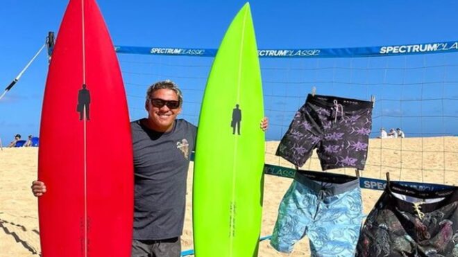 Perryt szörfözés közben, Malaekahana Beachen,