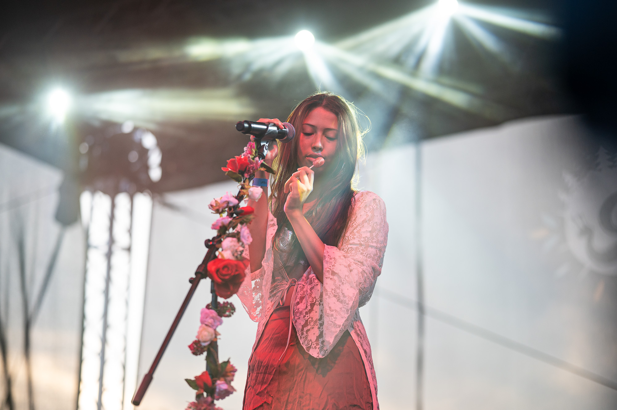 Értjük, miért. Koncertjei kész showműsorok, a szó legnemesebb értelmében, úgy erotikus, hogy közben nem tárgyiasítja magát, és úgy énekel a saját sérülékenységéről és bizonytalanságáról, hogy közben tisztában van azzal, hogy mit ér, mit érdemel és milyen hatalma van a környezete, de főleg a férfiak felett. Még ennél is látványosabb azonban a több száz csukott szemmel vele éneklő, szintén 20 év körüli lány, aki minden koncertjén egy emberként érzi azt, hogy ezek a számok róluk szólnak. Kivéve talán a hírhedt Tankcsapda-feldolgozást, amit annyira imádnak gyűlölni a középkorú rockerek.
