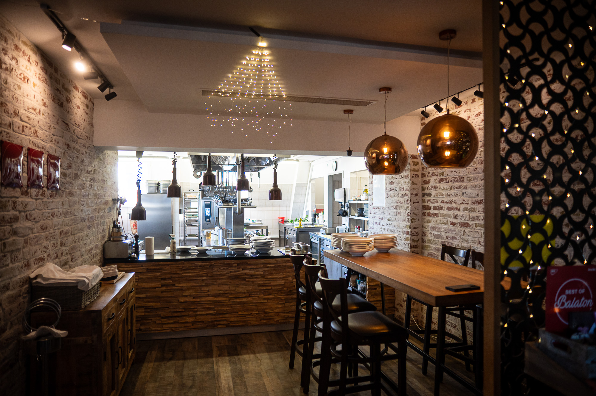A Taste Balaton sajtótúrája előtt nem gondoltuk volna, hogy egy pláza felső emeletére küldjük majd a kedves olvasókat, márpedig oda küldjük. A Konyhám Stúdió 365 ugyanis egy fonyódi bevásárlóközpontban található, ennek megfelelően egész évben nyitva van. Ez is páros vállalkozás: Szikra Gabi és Renczés Gábor már sikerre vittek egy fenyvesi strandbisztrót, amikor megnyitották ezt az éttermet. Pont akkor, amikor nagyon kevés hely nyílt, annál több zárt be: 2021 telén.