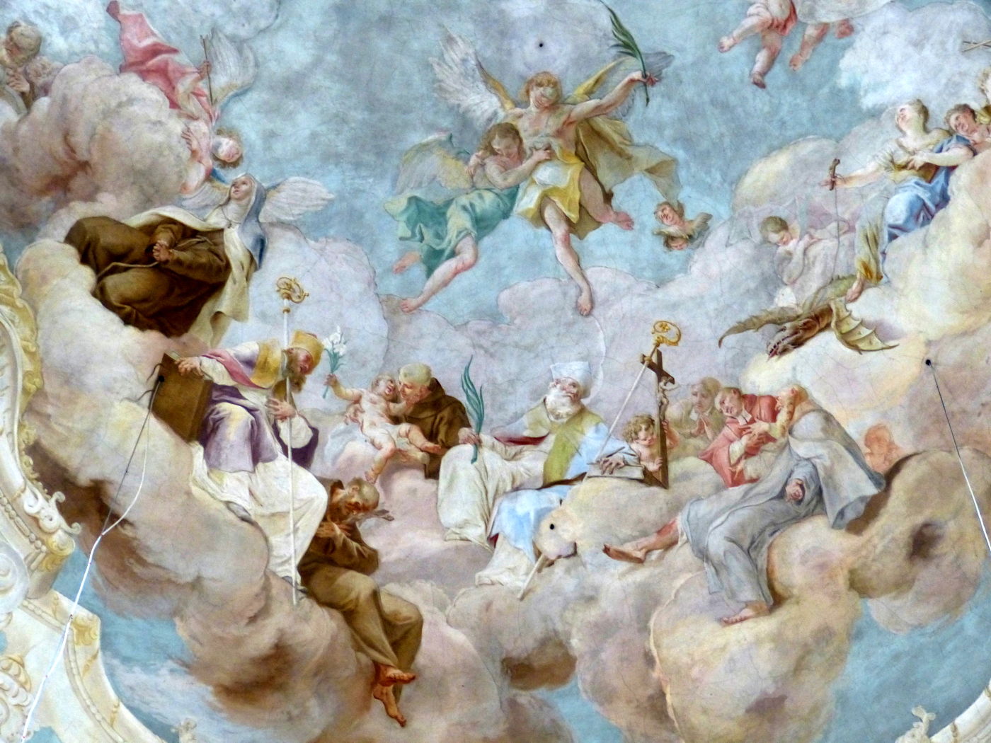 Akár paradicsomi mezőkről, akár egy égi városról volt szó, az üdvözültek lelkeit vagy ruhátlanul ábrázolták (akárcsak a bűnbeesés előtt, az édenkertben), vagy gyakrabban fehérbe öltözve (amint a Jelenések könyvében olvasható).