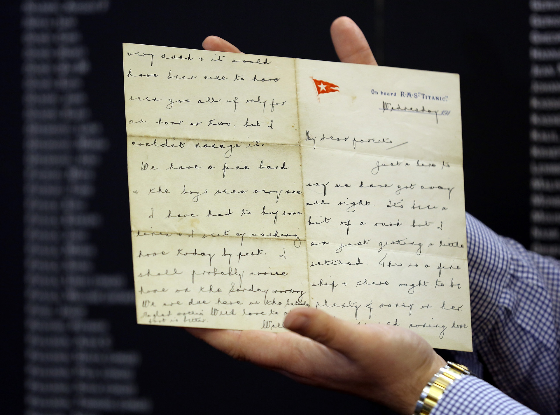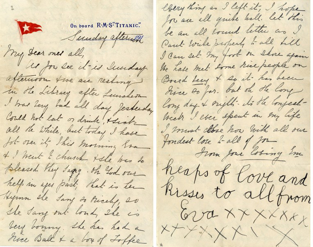 Esther Hart a levelet 1912. április 14-én, a baleset napján írta testvérének, a hajó fedélzetén. A levélben leírja, hogy milyen jól telik az utazás, és megemlíti, hogy aznap este fellép egy koncerten. A levél írásakor még nem sejthette a közelgő tragédiát. Az írógéppel készült levelet akkor adták volna postára, amikor a hajó megérkezik Amerikába, ám a szerencsétlenség miatt ez sosem történt meg. Esther egy könyvbe rejtve tartotta magánál, és így túlélte a hajókatasztrófát. Később a családja őrizte meg. 2014-ben 119 000 fontért (56 millió forintért) kelt el egy árverésen, ezzel az egyik legértékesebb Titanic-ereklyévé vált.