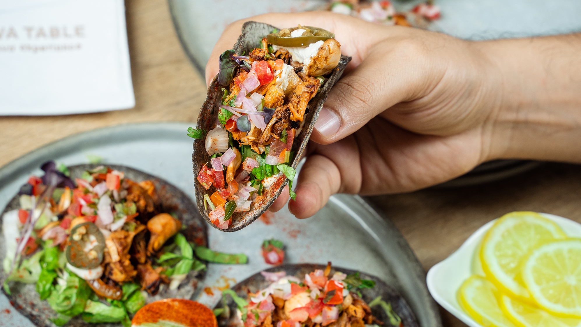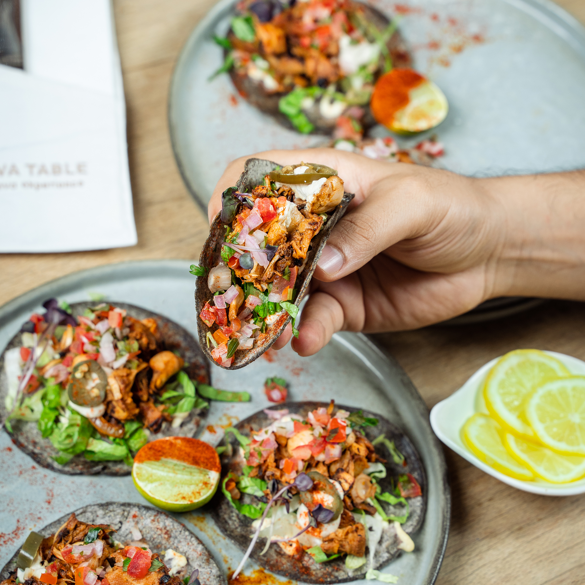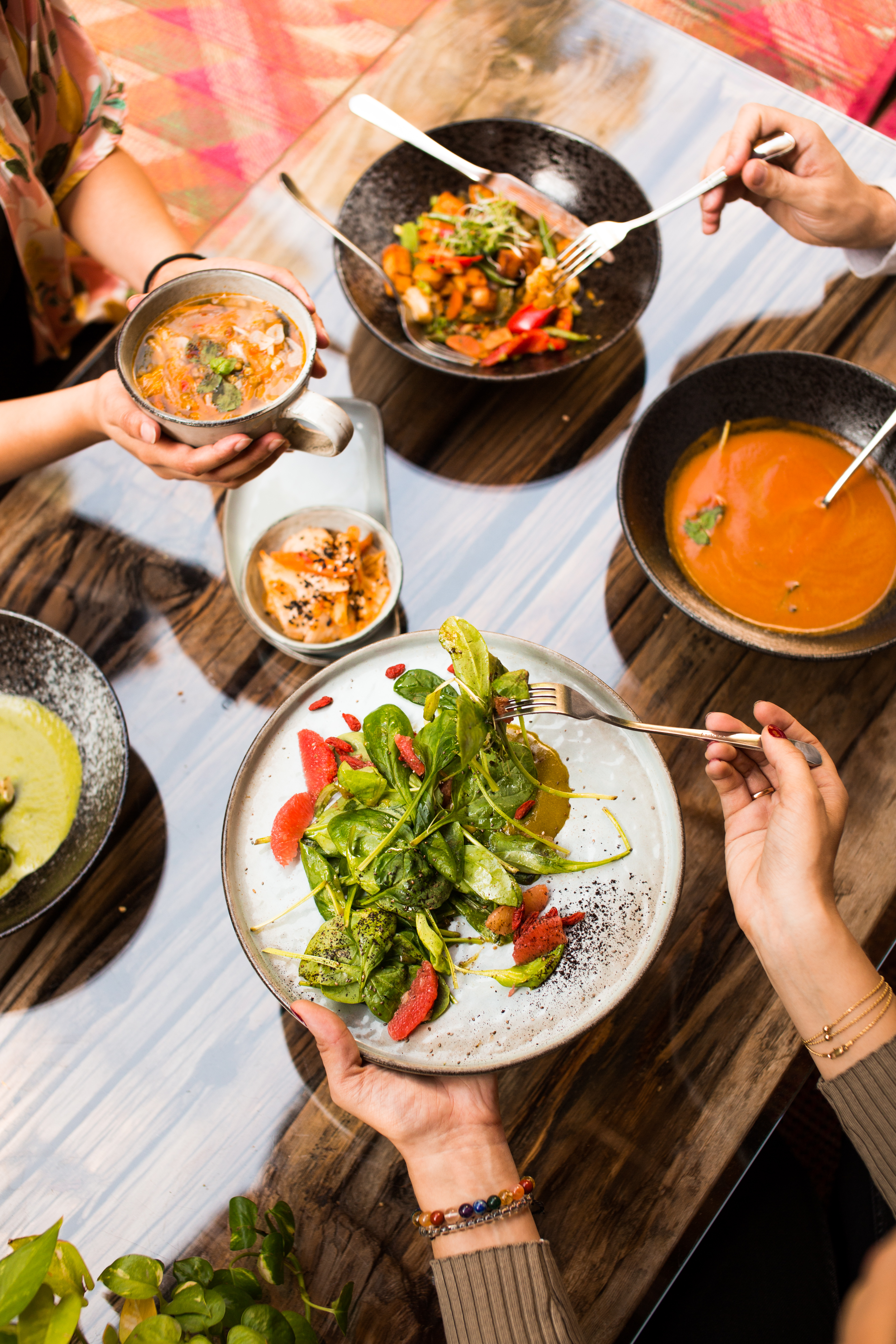 A SEVA Table ezzel szemben teljesen más ritmust diktál: ez itt a modernkori hippik zöldövezeti, vegán oázisa: itt nincs hús, nincs cukor, nincs glutén és mégsem hiányzik semmi, ha betérsz. A menüben olyan fogások szerepelnek, mint a csicseriborsó-alapú, tojásmentes omelette, a különféle superfood bowlok, quinoa, tofu és friss zöldségek kombinációjával, vagy a tudatosan összeállított növényi desszertek, például a SEVA Snickers Pie. Amiért a SEVA még nagyon-nagyon szerethető, hogy ez a lassú atmoszféra közvetlenül a város szívében található, magunk sem gondoltuk első pillantásra, hogy a forgalmas utakról egy csendes, békés szigetre tévedünk. Ez a hely nem csak étterem, hanem egy közösségi tér is könyvekkel, az emeleten jógával és hangtál-workshopokkal, a földszinten masszázzsal, szóval elég messze áll a tipikus gyorsétterem-élménytől. A SEVA azt mutatja meg, hogy Dubaj nem csak a látványról szól, hanem a belső egyensúly kereséséről is, és ez a gasztronómiával karöltve zseniálisan tud működni.