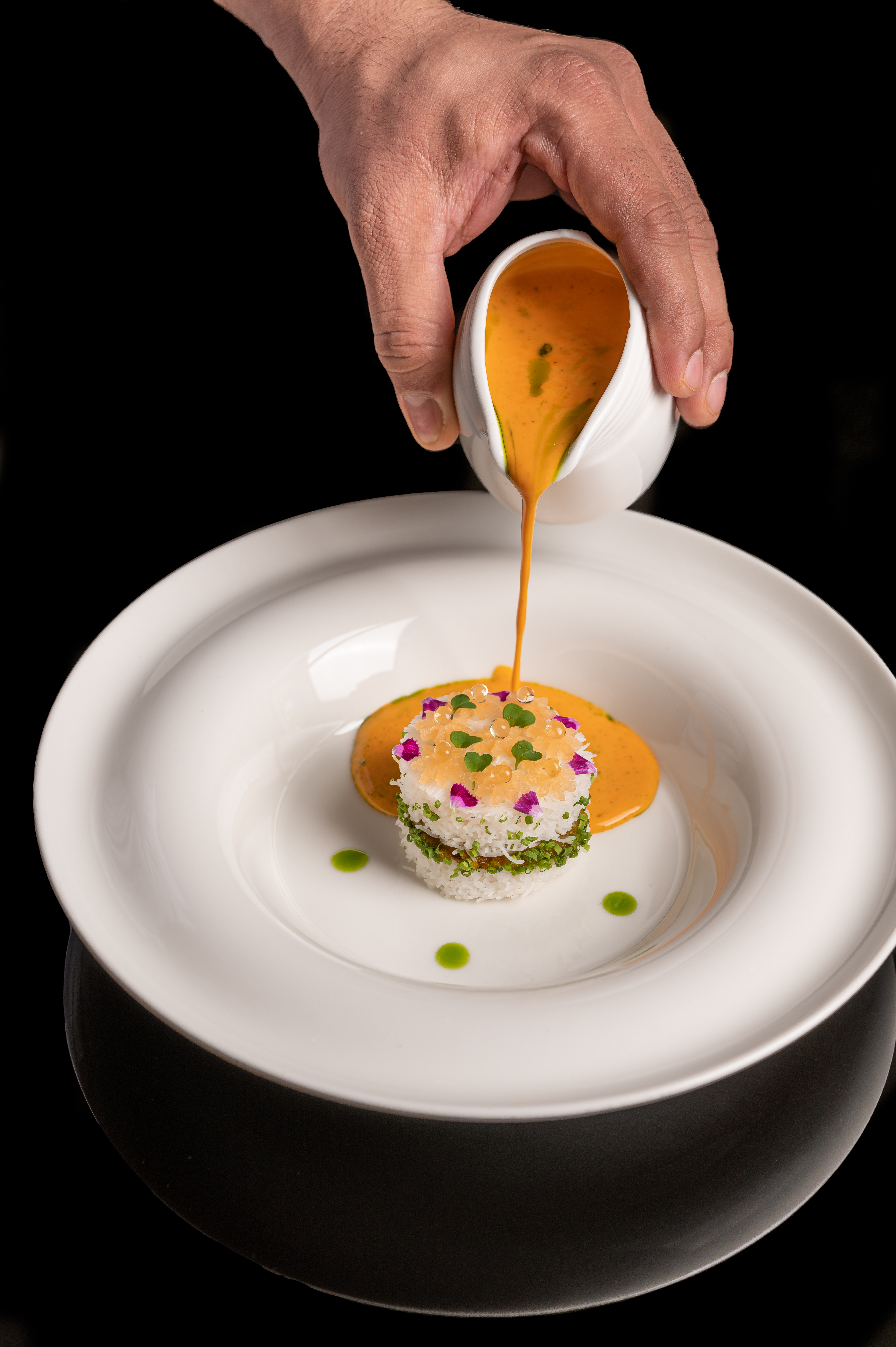 A Tresind egészen más világ: itt az indiai konyha fine dining formában, például degusztációs menüben jelenik meg (lehet kérni másmilyen menüt is, de talán ez a legtalálóbb és legkifejezőbb egy kóstoláshoz, mi naná, hogy nem bántuk meg), amely Dubaj egyik legfontosabb gasztronómiai mérföldköve. Itt az indiai konyha értelemszerűen a főszereplő, de merőben újragondolt technikákkal, precíz tálalással és mély, rétegzett ízekkel. Ez az a hely, ahol az indiai gasztronómia kilép a megszokott keretek közül, és valódi fine dining nyelven szólal meg.