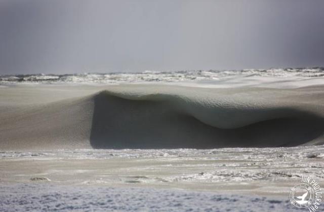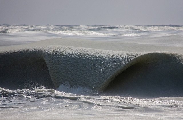 A fotósok szerint azokban a napokban a maximális hőmérséklet -7 fok volt ordító széllel megspékelve. A jeges szél hatalmas hullámokat korbácsolt a tengeren, ugyanakkor a fagy miatt nem változtatta meg a hullámok formáját. A zord időjárásnak köszönhetően különös és látványos természeti jelenséget fotózhattak – tökéletesre fagyott tengerhullámokat. A térségben hasonló időjárási körülményeket utoljára 81 évvel ezelőtt jegyeztek fel.