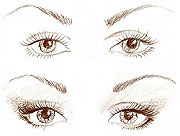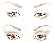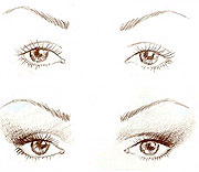 A külső részt fessük világosabbra, belül pedig sötétebbre. Csak a szem közepéig használjuk a szemceruzát. A felső szempillákat csak kevéssé fessük ki, de akkor is felfelé, ne pedig kifelé.