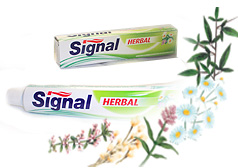 Az új Signal Herbal természetes hatóanyagainak, valamint fluorid és kálcium tartalmának köszönhetően véd a fogszuvasodás ellen, és óvja a fogakat és a fogínyt. A fogkrém kamilla, zsálya, kakukkfű és mirha kivonatot tartalmaz, melyek regeneráló és antibakteriális hatásukról ismertek. Használatával a fogak és a fogíny egészségesebbek és erősebbek lesznek.