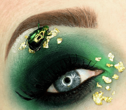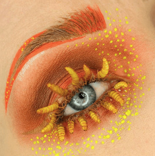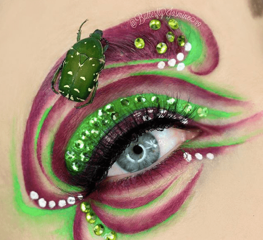 Az amerikai Jasmine Ahumada azonban VALÓDI bogarakkal és rovarokkal egészíti ki sminkeit: a szőröslábú pókoktól kezdve a kanyargó hernyókon át a zöldhátú poloskáig mindenféle lényt szemei közelébe enged. Ahumada profin kidolgozott, kreatív mégis irtóztató sminkjeit egyébként Instagramon lehet követni, ha valakinek van gusztusa az ilyesmihez. Most megmutatjuk legérdekesebb és legmeghökkentőbb munkáit: