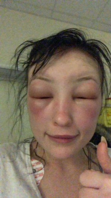 Lauren Woods dobozos hajfestékkel festette be a haját február 8-án, csütörtökön. A brit nő 24 órával korábban elvégezte az allergiatesztet is és nem tapasztalt semmi rendelleneset, ám a hajfestést követően a fejbőre égni, az arca dagadni kezdett. Szombaton bement a kórházba, szteroidokat és allergia elleni gyógyszer kapott, majd hazaküldték. A tünetei azonban tovább súlyosbodtak, vasárnap reggel már a szemét sem tudta kinyitni, annyira be volt dagadva. Ezek után újra kórházba vitték, ahol infúziót kapott.