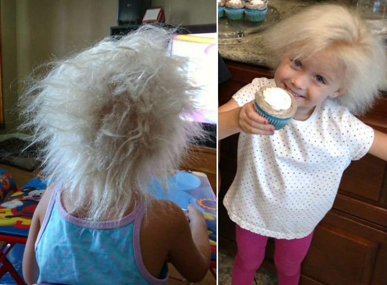 Az 5 éves, floridai Evelyn Cubbedge úgynevezett kifésülhetetlen haj szindrómával él, mely a világon kevesebb mint 100 embert érint. Egy génmutáció következtében a kislány haja folyamatosan égnek áll, nem lehet teljesen kifésülni, és sosem nő meg igazán. Ugyanebben a rendellenességben szenvedett egyébként Albert Einstein is.