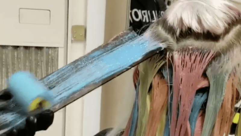 Egy kanadai fodrász, Kelly O’Leary az Instagramra töltötte fel azt a videót, melyen igencsak szokatlan eszközzel, konkrétan festőhengerrel fest szivárványszínű hajat modelljének.