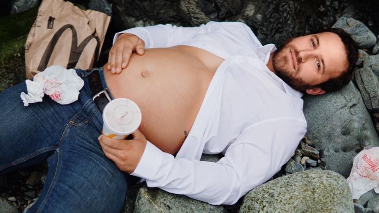 Vicces terhesfotókkal ünnepelte a férfi, hogy apa lesz