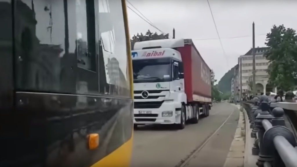 Villamos kísérte ki a sínekre tévedt kamiont Budapesten – videó