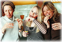 Szolídabb estéken bódító koktélokkal varázsoljuk el magunkat, vadabb éjszakákon egyik tequila érkezik a másik után. És két-három kör után férfi legyen a talpán, aki közénk merészkedik, különösen egyedül! Persze mindig akadnak olyan nagymellényűek, akik azt hiszik, könnyen elbánnak néhány pityókás szőkével. Csak azt nem tudják, hogy a tequila (Laura az aranyra esküszik, naranccsal és fahéjjal, mi többiek az ezüstre sóval és citrommal) mit tesz velünk! Röpködnek a sziporkák, egymás szájából vesszük ki a szót, és hihetetlenül élvezzük az eleinte kemény pasik elbizonytalanodását.