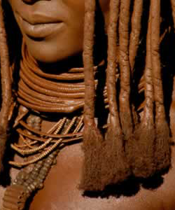 Sárral formázott hajtincsek, vékony testalkat, élénk barna tekintet. Smink egyáltalán nincs, viszont a ruha szabadon hagyja a hetykén ágaskodó melleket: Namíbia
