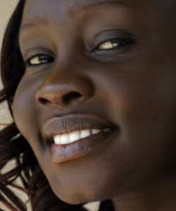 Telt és puha fenék, viszont kis mellek, mégis lágy, nőiesen puha test. Loknis, sötéten csillogó haj, széles orr, és vakítóan fehér fogsor: Szudán
