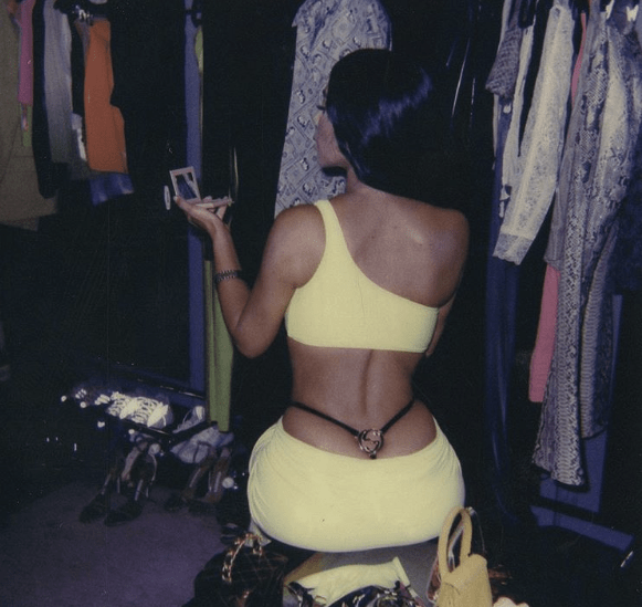 Kim Kardashian még 2018-ban töltötte fel Instagram-oldalára az alábbi fotót, sminkkollekciójának legújabb darabjait népszerűsítendő, ám a képen mégsem a púderdoboz, sokkal inkább a celeb kőművesdekoltázsa érvényesül leginkább. Kardashian ráadásul nem aprózta el, ugyanis a tanga, melyet visel, valódi vintage darab: Tom Fordnak a Gucci számára tervezett, 22 évvel ezelőtti kollekciójából való.