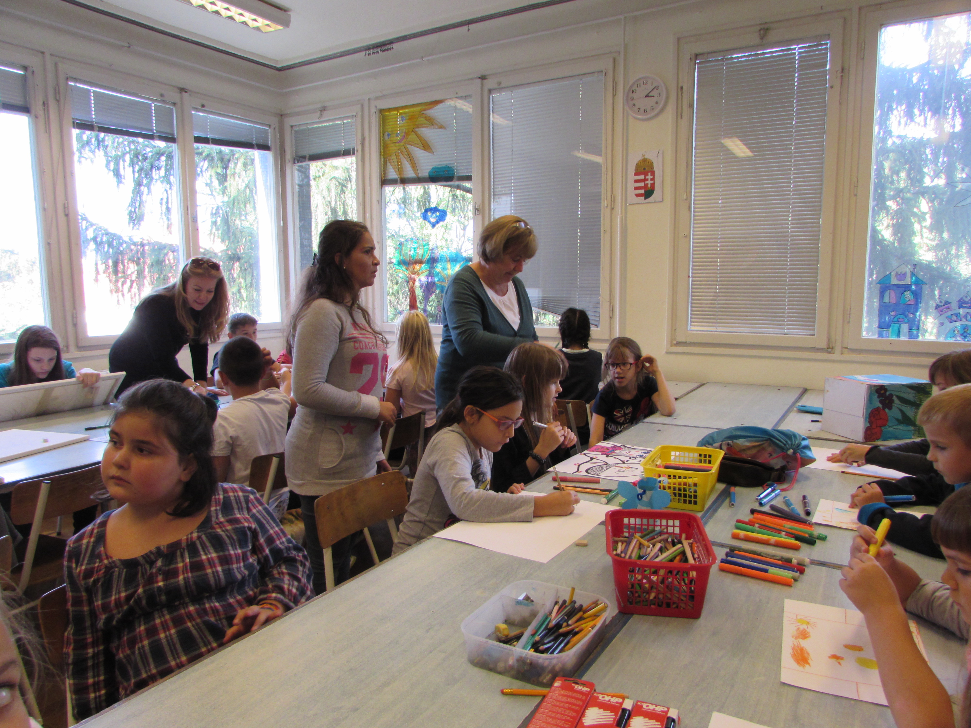 Szóval nem mentem semmire, más taktikát követtem: elkezdtem őket szépen csendben lerajzolni. Ültem a terem közepén és dolgoztam, ők pedig egy idő után odajöttek, nézték, csodálkoztak, hogy ez hasonlít, egyre jobban megtetszett nekik a rajzolás, és a végén őszinte érdeklődéssel fordultak felém. Ez volt a lényeg. Sose felejtem el, mikor az egyik fiú elismerően hümmögve megjegyezte: „Milyen jól rajzol jány létére!” Amikor megtört a jég, elkezdtem őket is rajzolni tanítani, dekoratív, geometriai formákkal kezdtük, amiről fogalmuk sem volt kezdetben, hogy mik azok, de rájöttek, hogy igenis képesek lerajzolni dolgokat és borzasztóan szerették. Később kooperatív feladatokat csináltunk, együtt rajzoltunk, és a kész műveket kiraktuk a folyosóra, és végre nekik is volt mire büszkének lenniük. Aztán lett szakkör, és egyre több gyerek járt. Szóval először megkerestem a módszert, aztán azt fejlesztettem tovább és tovább. És egyre nagyobb sikereink lettek, a gyerekeim versenyeken indultak, és gyakran nyertek is. Így kezdődött az én gyermekközpontú vizuális nevelésem, ami örömet, büszkeséget adott és ezen keresztül önbizalmat is.