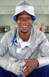 Kembe Sorel vívófelszerelésben |