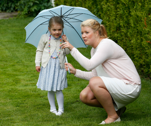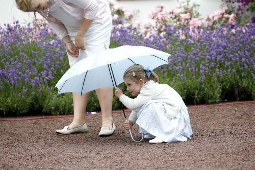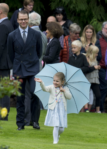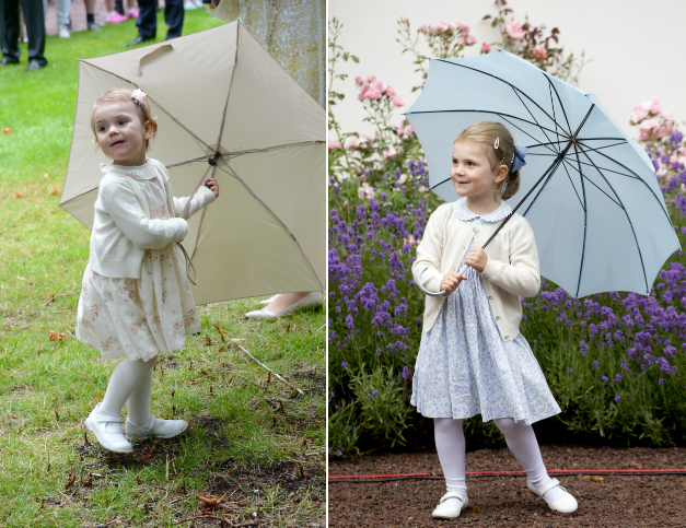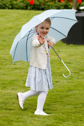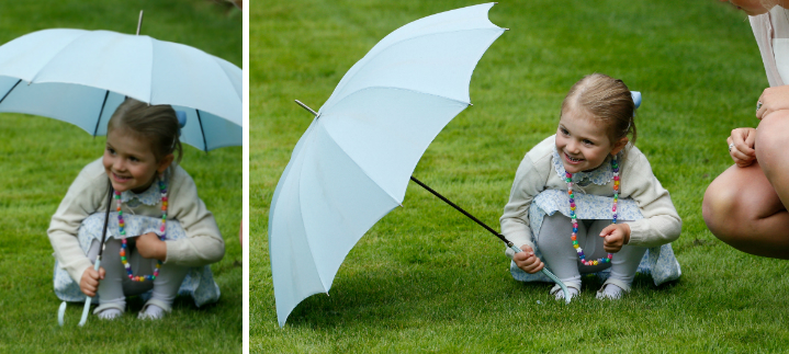 Amikor megunta a bújócskázást, Estelle hercegnő modelleket megszégyenítően hosszan pózolt. Ha így folytatja, neki az esernyő lesz az állandó „védjegye”: Viktória hercegnő tavalyi születésnapi buliján is nagyon jól szórakozott az esernyőjével.