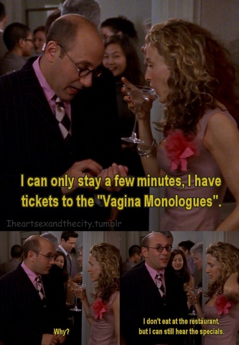 7. „Már csak pár percig tudok maradni. Vannak jegyeim a Vagina monológokra.”