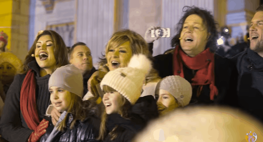 Az emberek kezdetben döbbenten állták őket körül, végül mindenkit átjárt az ünnepi hangulat és együtt énekeltek a sztárokkal.