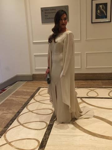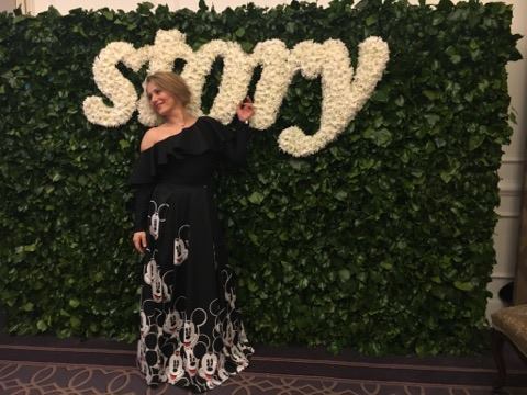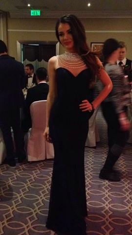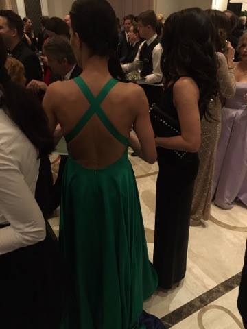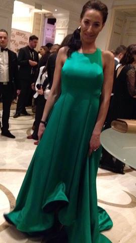 Doszpot Evelin zöld ruhája Nagy Orsolya Nos Collectionjának régebbi modellje. Minden bemutatón ott volt, és már régóta kinézte magának, örül, hogy most volt egy alkalom, amire felvehette. „Nem vagyok az a Story-gálás típus, de ezt a ruhát egyszer fel akartam venni. Lényegében a ruhához választottam a gálát.”
