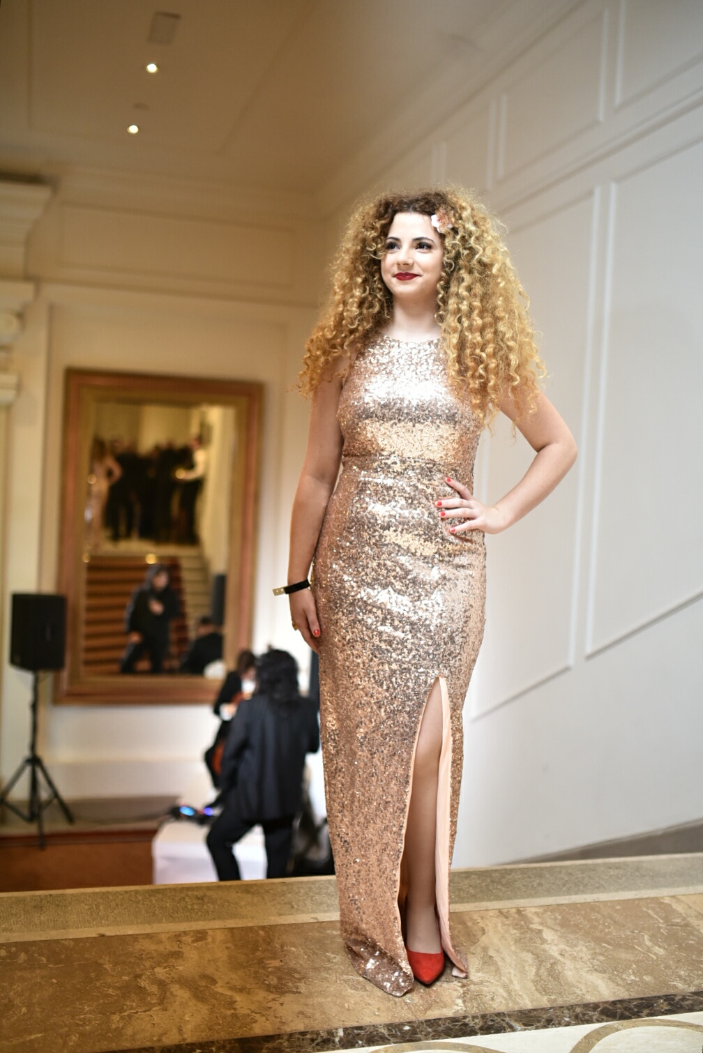 **19:59**A Story főszerkesztője interjúkat ad, a háttérben Doszpot Evelin, akit feltűnő, zöld ruhájában bárhol felismerünk. Jó választás volt**
