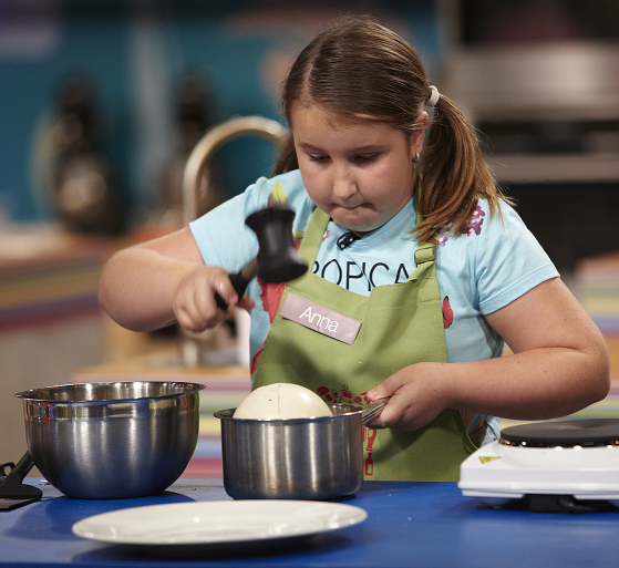 „Itt vannak a palacsintasütők. Párhuzamosan egyszerre hat felületen tudtok tojáslepényt sütni. Ne csak a mennyiségre figyeljetek, hanem arra is, hogy ezek a lepények tökéletesek legyenek” – ismertette a feladatot Fördős Zé, amitől a kis kukták teljesen ledöbbentek. Sok idejük azonban nem volt gondolkodni a feladat nehézségén, hiszen a tökéletes tojáslepény elkészítése nem kis munka.