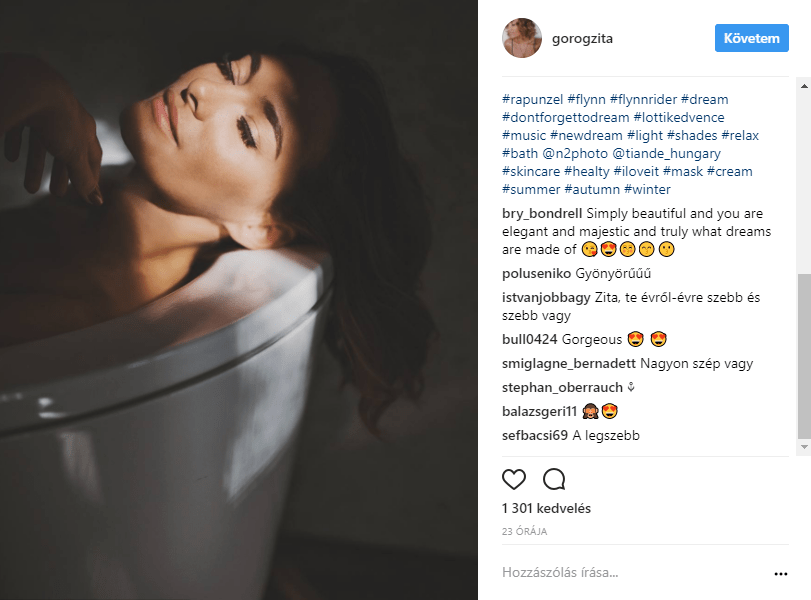 A műsorvezető egy kádban pózol, valószínűleg teljesen meztelenül, bár ez nem látszik a képen, de sejthető. A követői imádják az új fotót, férfiak és nők egyaránt bókolnak Zitának. „Te évről-évre szebb és szebb vagy” – szól az egyik rajongói komment, amivel persze nem is tudunk vitatkozni!