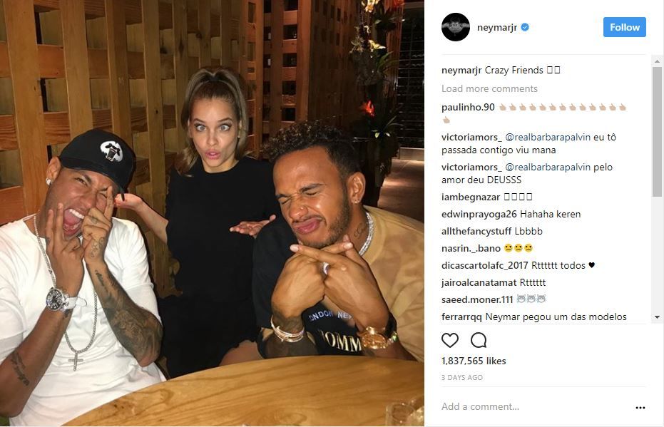 A brit lap szerint Lewis Hamilton játszotta a kerítő szerepét aznap este, és az őt kísérő kanadai modellel igyekezett minél előbb lelépni, hogy Barbi és Neymar együtt lehessenek. A Sun fotói szerint Barbi hajnali ötkor távozott a londoni lakásból smink nélkül, ráadásul egy másik ruhában, mint amiben érkezett.