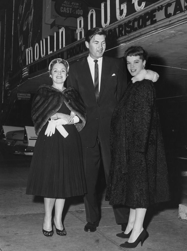 Magda Schneider és lánya, Romy Schneider Fess Parker színésszel, a párizsi Moulin Rouge előtt (Fotó: Keystone/Getty Images)