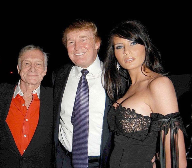 Hugh Hefner a jelenlegi amerikai elnök, Donald Trump és a first lady, Melania Trump társaságában (Fotó: Tumblr)