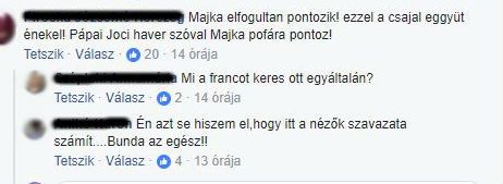 – írta nekünk válaszul a TV2. Persze, Pápai Joci produkciói után rendre felmerül, hogy mennyire fontos a szórakoztatás, vagy inkább azt kellene-e pontozni, hogy mennyire sikerül egy adott előadót hangilag, mozgásilag leutánozni. Elvégre itt jó énekesek vannak, akik nem egy kareokebárban tartanak beöltözős estet, hanem át kellene formálniuk magukat. Ilyen szemmel Janicsák Vecát, Kollányi Zsuzsit és Pápai Jocit is csak kritizálták a nézők.