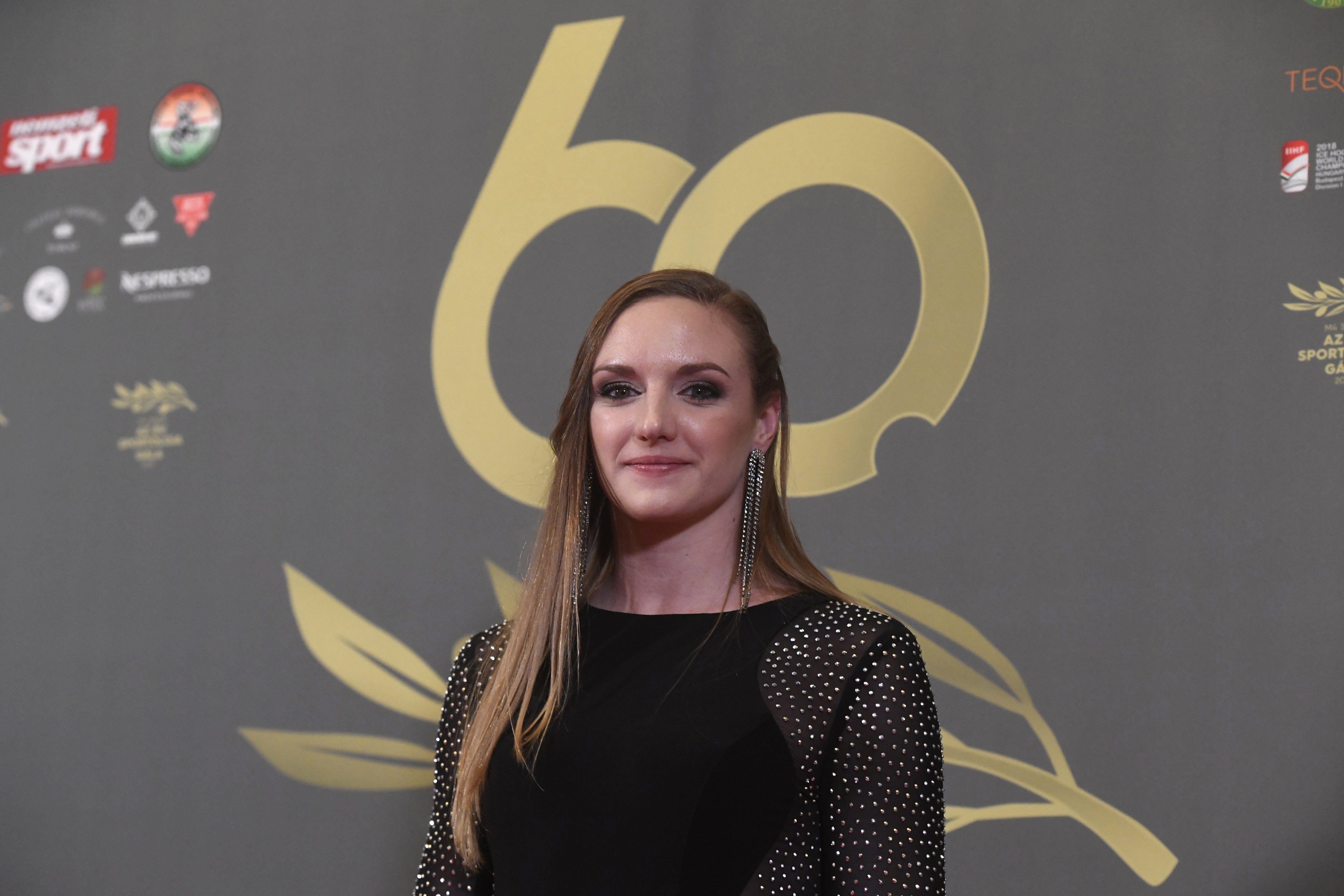 Hosszú Katinka háromszoros olimpiai, hétszeres világ- és tizenháromszoros Európa-bajnok úszó az M4 Sport – Év Sportolója Gálán a Nemzeti Színházban 2018. január 11-én