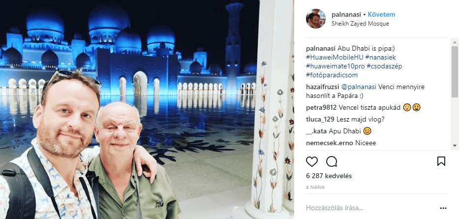 A sztárfotós és édesapja az Egyesült Arab Emírségekbe utaztak, előbb Dubajban néztek körbe, majd Abu-Dzabiba vezetett az útjuk. A képek bizonyítják, hogy az apa-fia túra nagyon jól sikerült, a rajongók pedig odavannak a papáért, és szerintük a kis Vencel egy az egyben az ő vonásait örökölte. Nánási Pál egyébként egy nekünk adott interjúban kihangsúlyozta, hogy számára mindig is nagyon fontos volt a család, és mióta elhunyt az édesanyja, még jobb a viszonya az apukájával, mint valaha.