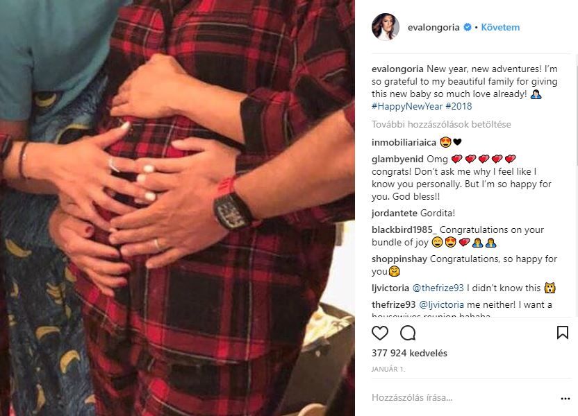 Lényegében az első három hónap leteltével Eva Longoria boldogan posztolta is az örömhírt, ezen a képen látszott először a pocakja: