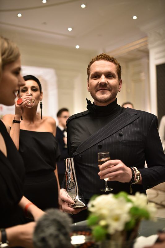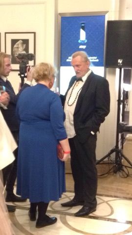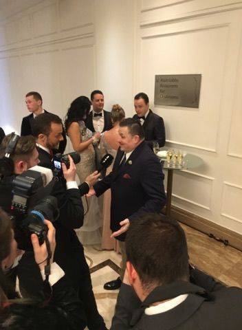 Benkő Laci interjúkat ad, miközben zajlik a díjátadó.