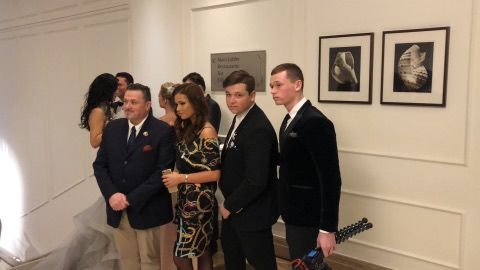 Akiknek nem jutott ülőhely a díjkiosztón, már a bálterem előtt várakoznak, hogy kezdődjön a mulatság.