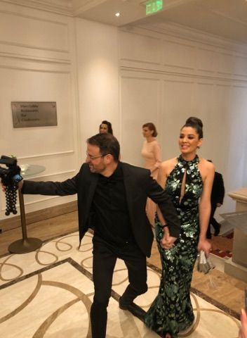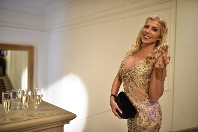 Bódizs Veronika maga tervezte ruhában jött. A merész ruha felső részét egy betét takarja. A Miss Universe két barátjával érkezett és vannak még itt ismerősei.