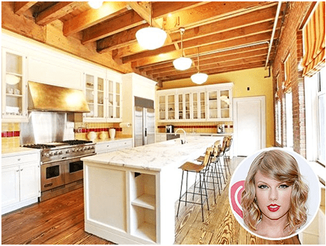 Ebben a 770 négyzetméteres New York-i penthouse lakásban a konyhának is jutott elég hely, így Taylor Swift nyugodtan áthívhatja a legjobb barátnőit egy közös főzésre. Drága konyháját gerendamennyezet fedi, de a márvány konyhasziget és csodaszép vitrinek sem hiányozhatnak a berendezésből.